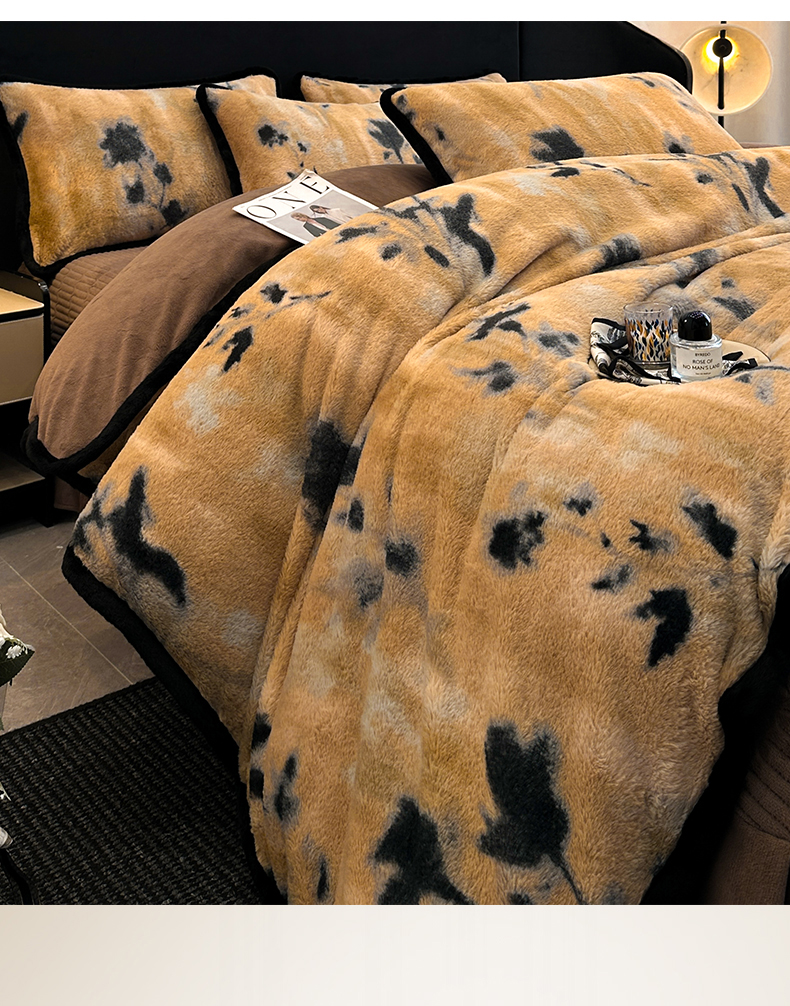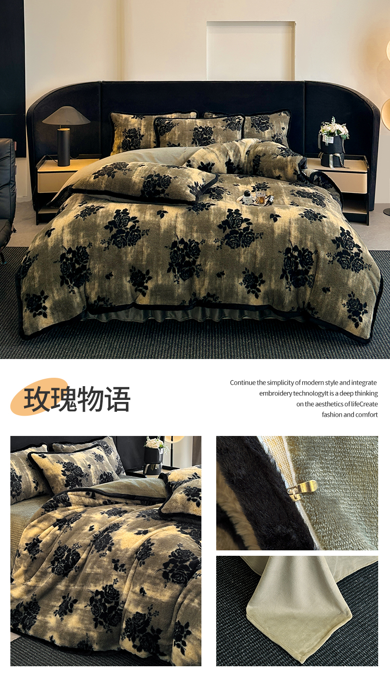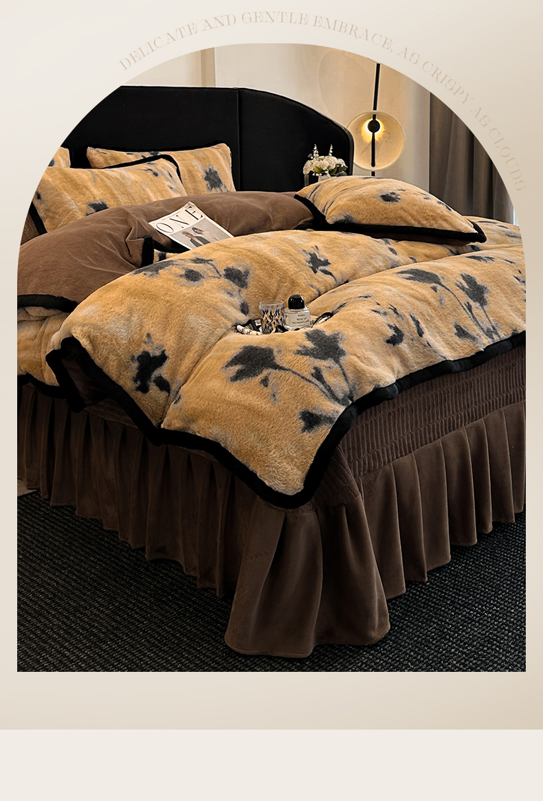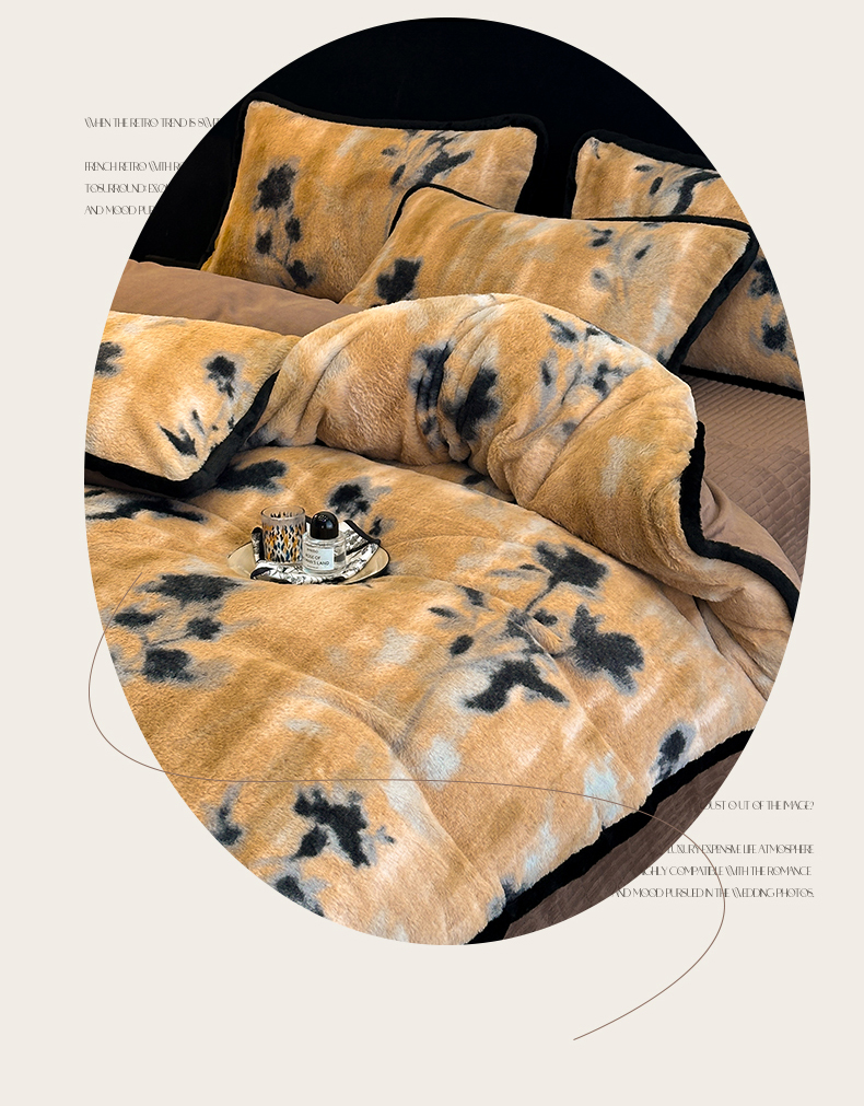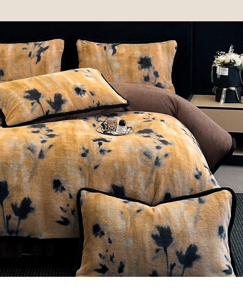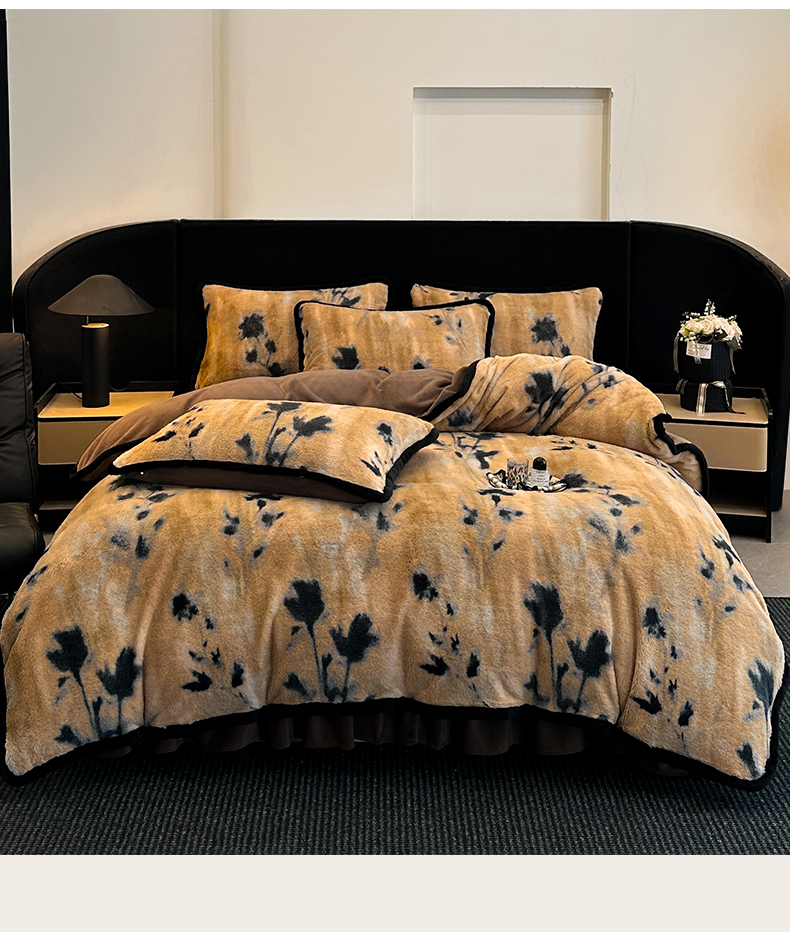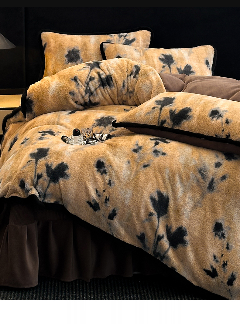 天之澜家纺 2025新款法式美拉德高克重兔绒四件套 墨影花