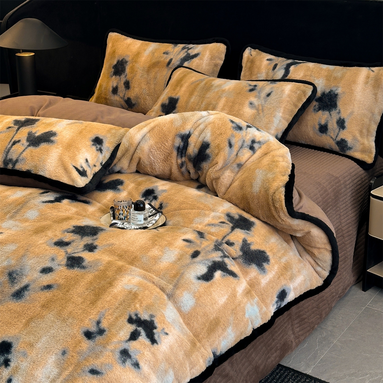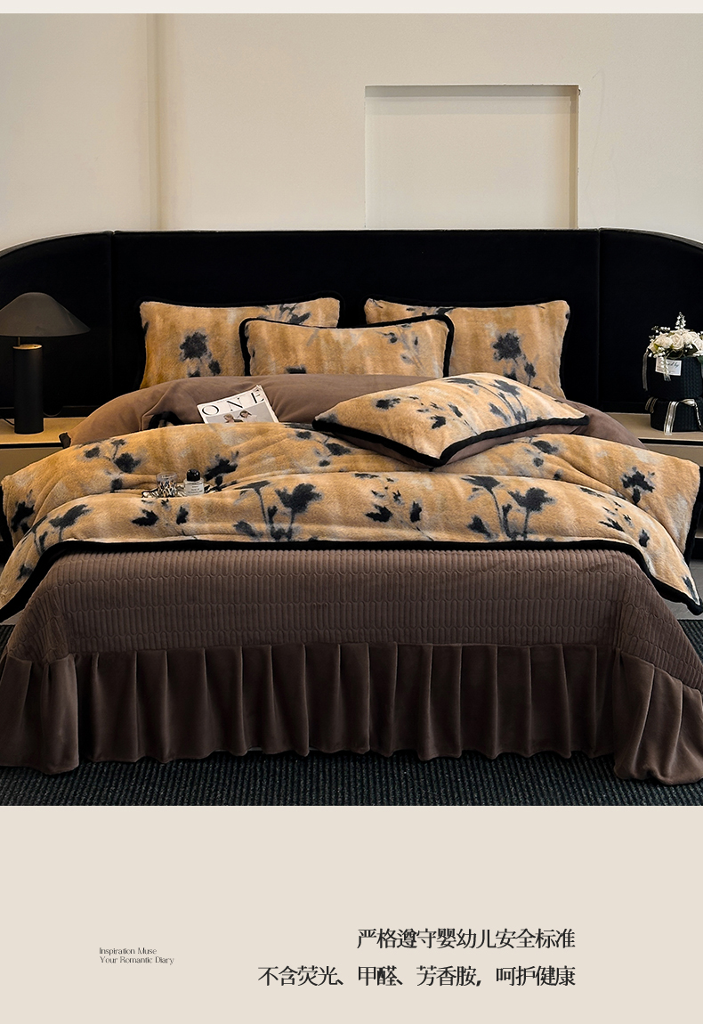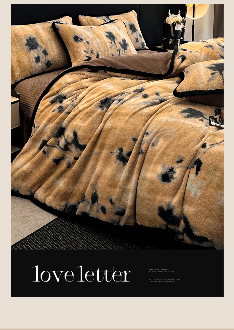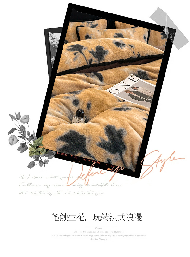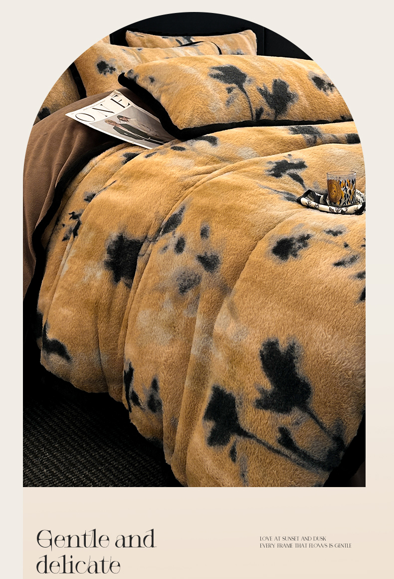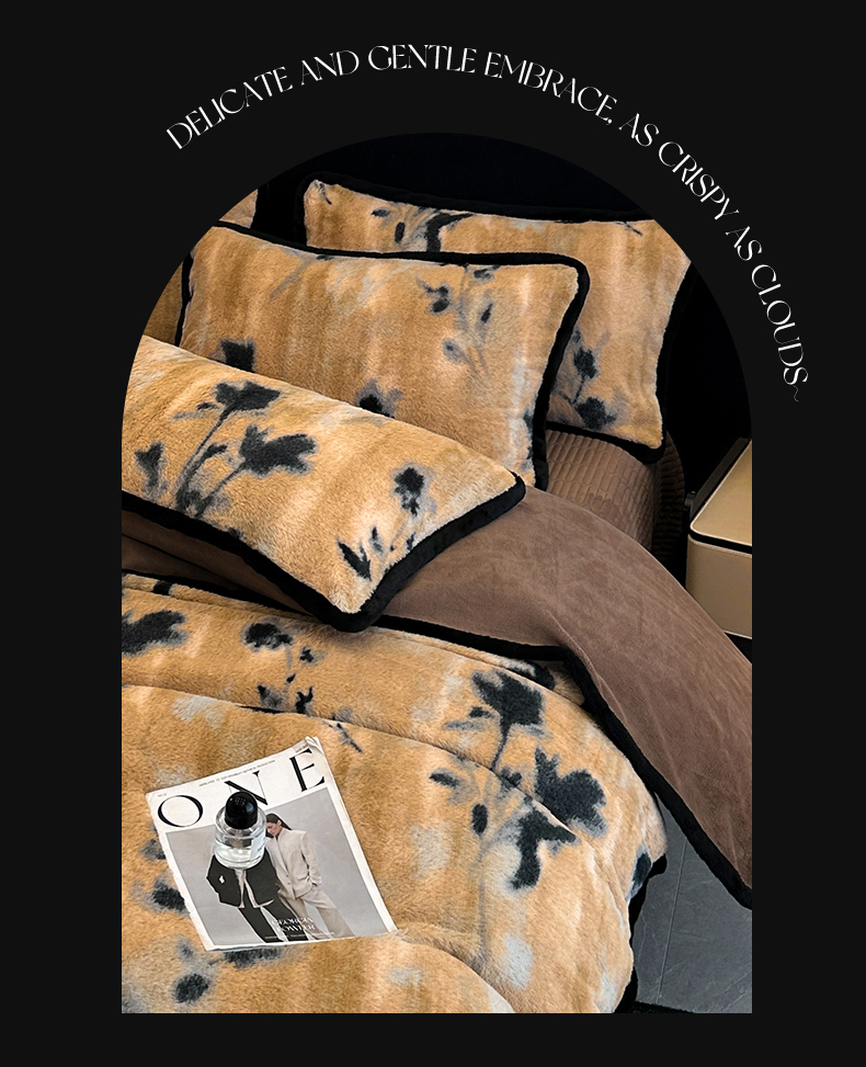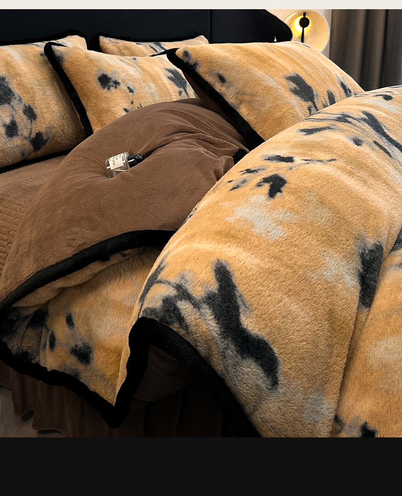 天之澜家纺 2025新款法式美拉德高克重兔绒四件套 墨影花