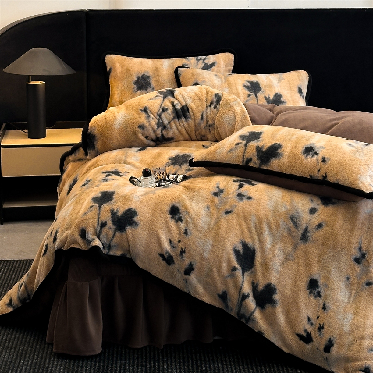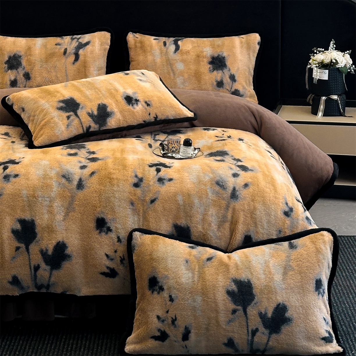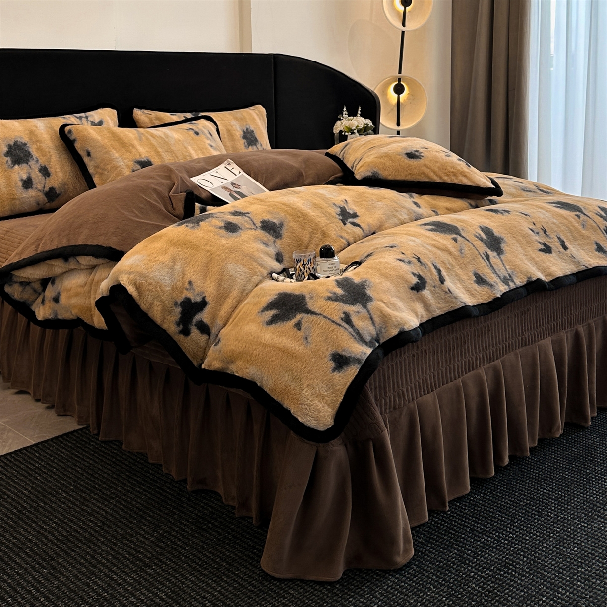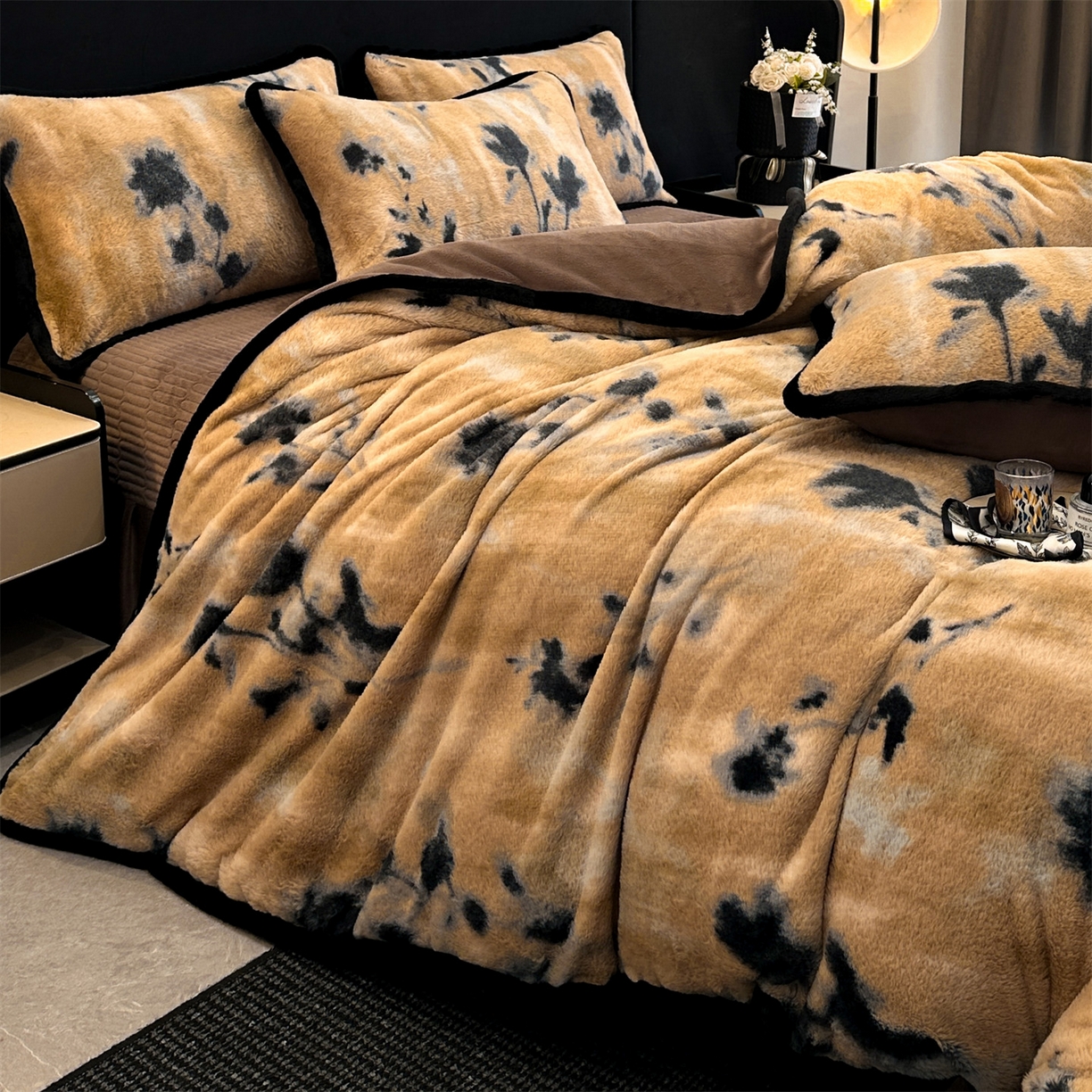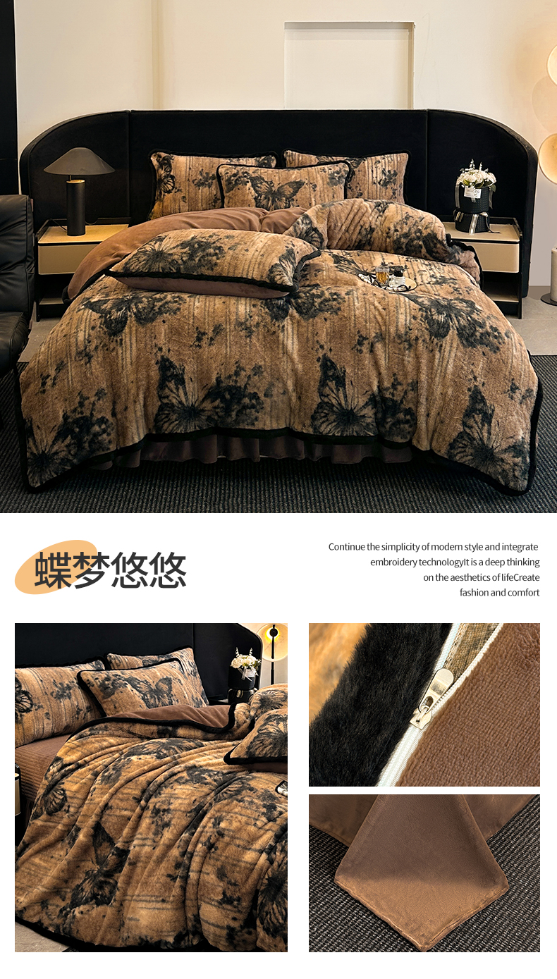 天之澜家纺 2025新款法式美拉德高克重兔绒四件套 墨影花