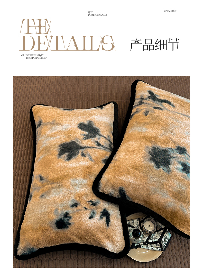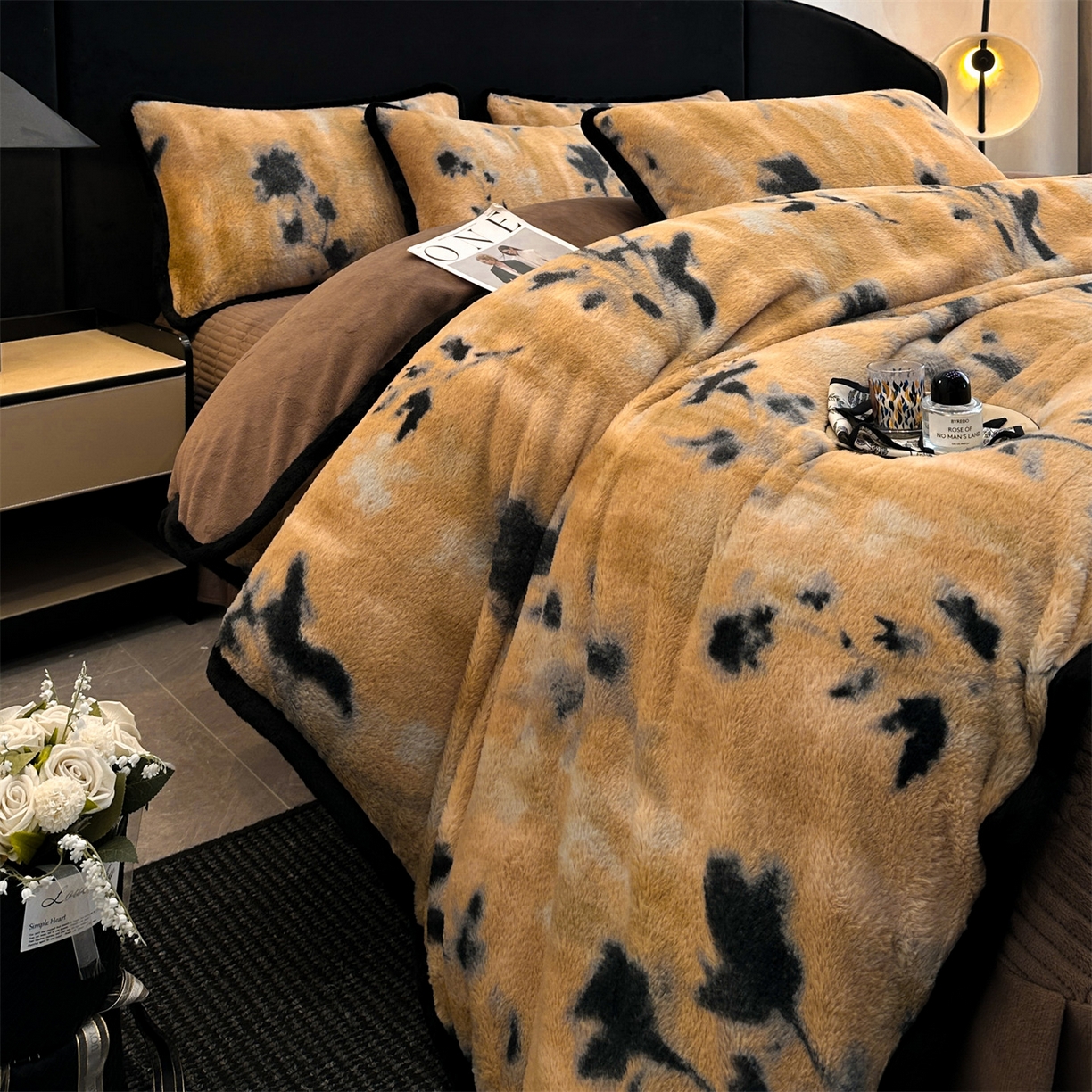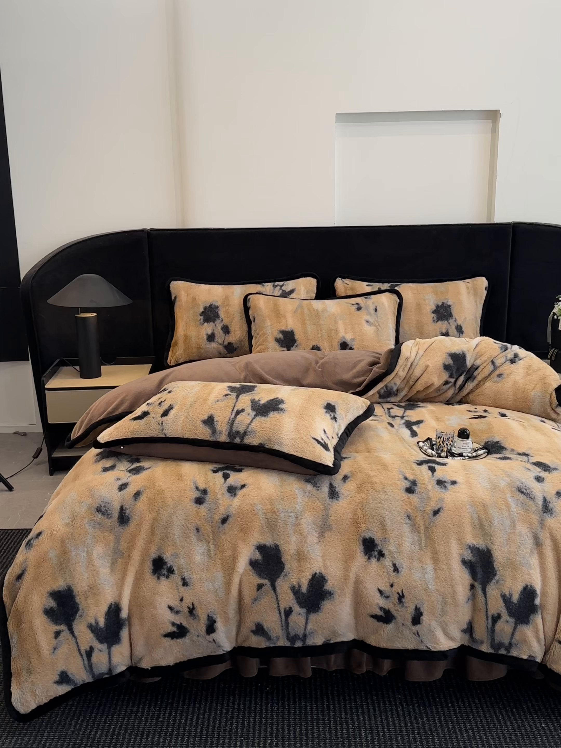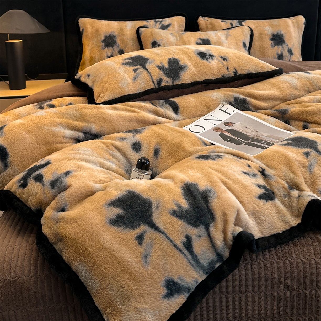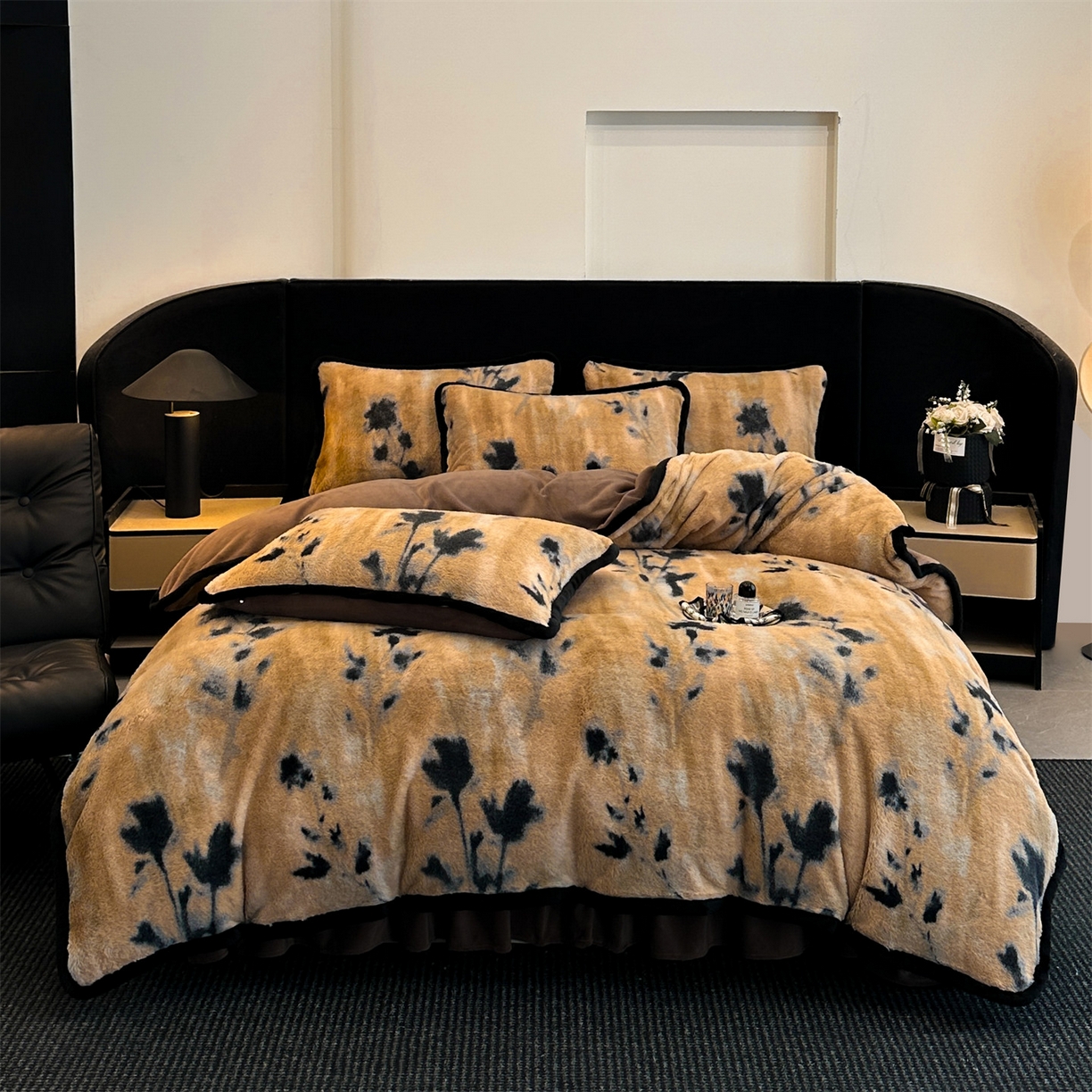 天之澜家纺 2025新款法式美拉德高克重兔绒四件套 墨影花