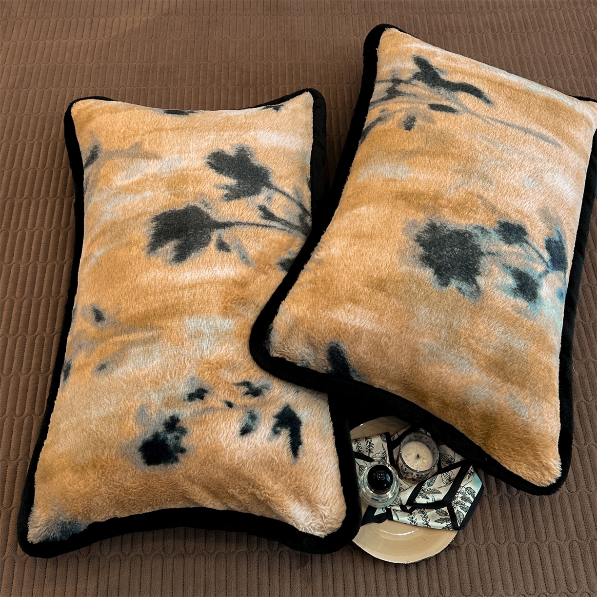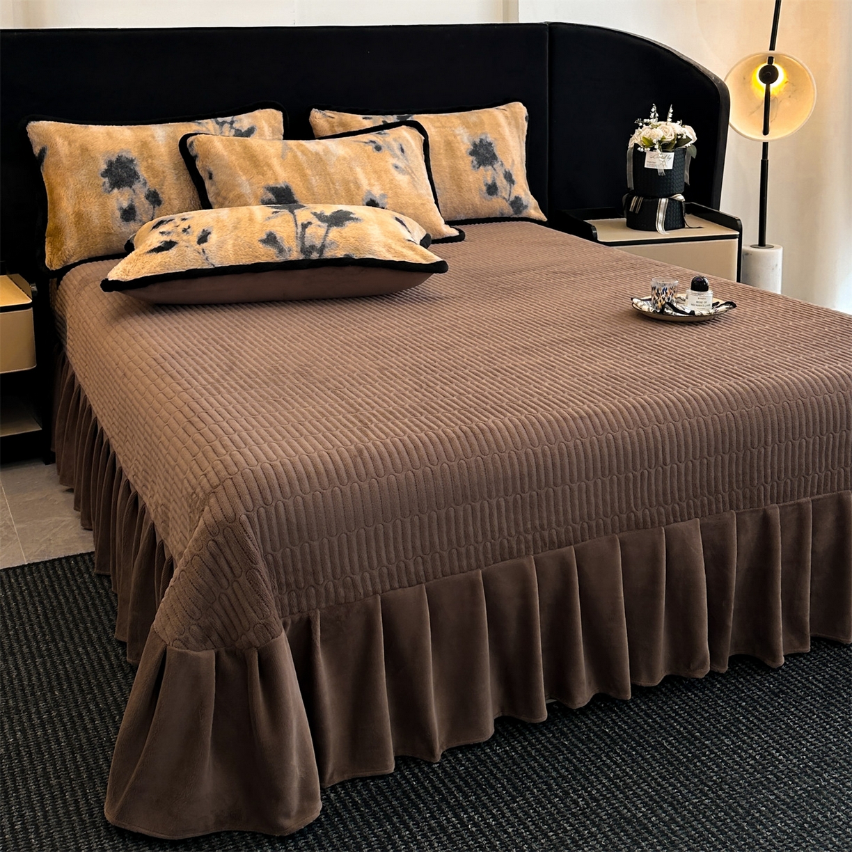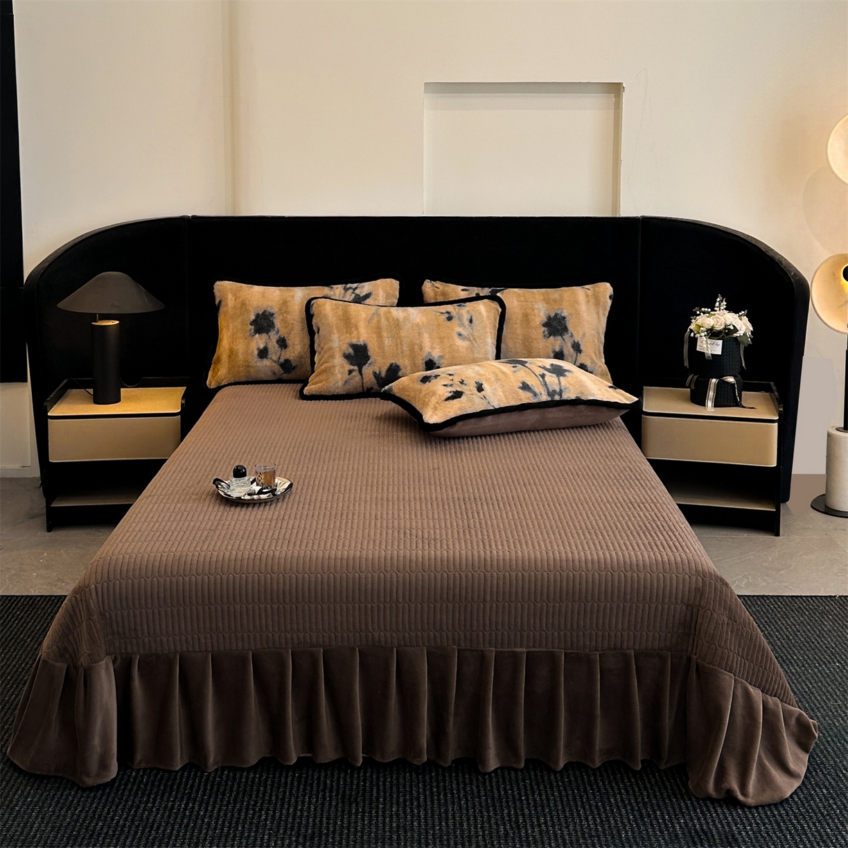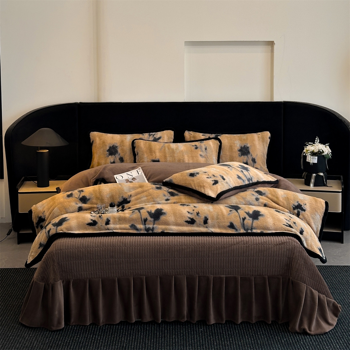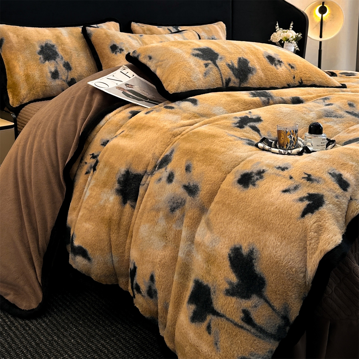 天之澜家纺 2025新款法式美拉德高克重兔绒四件套 墨影花