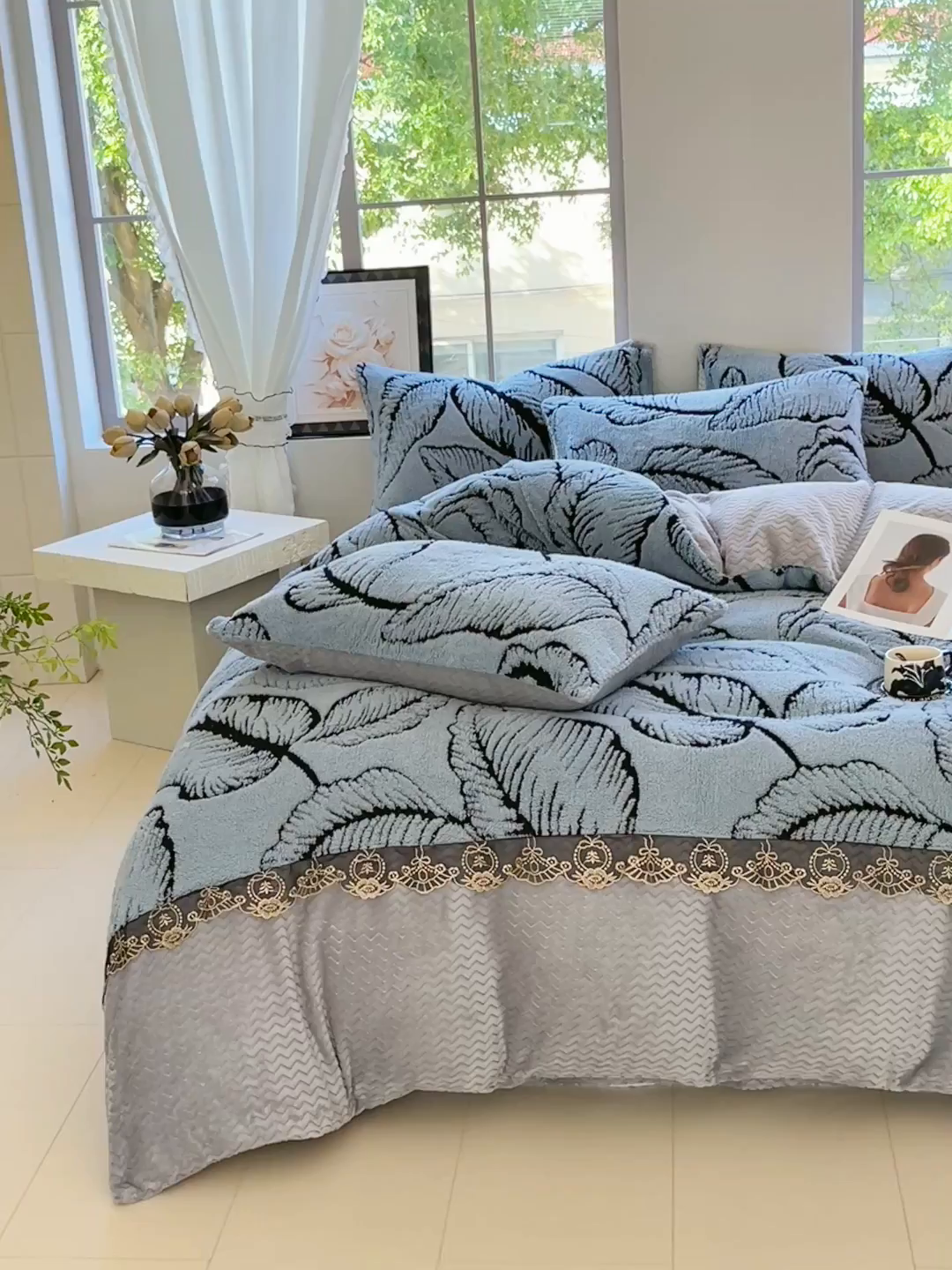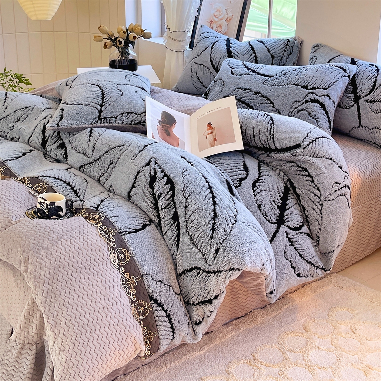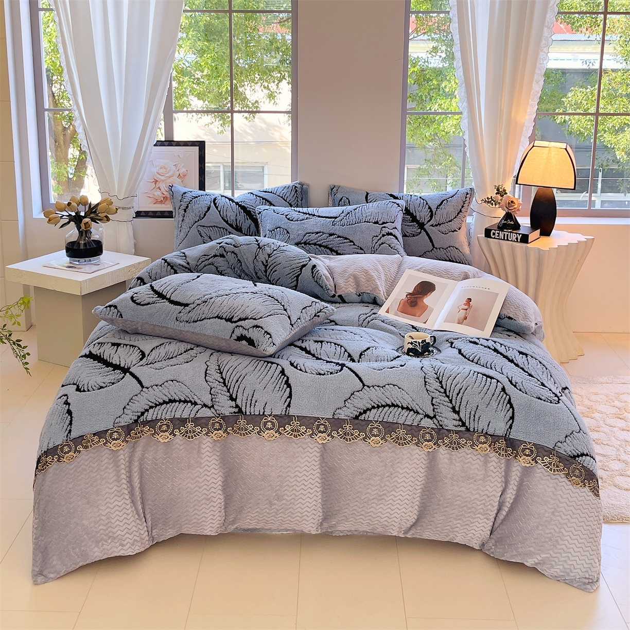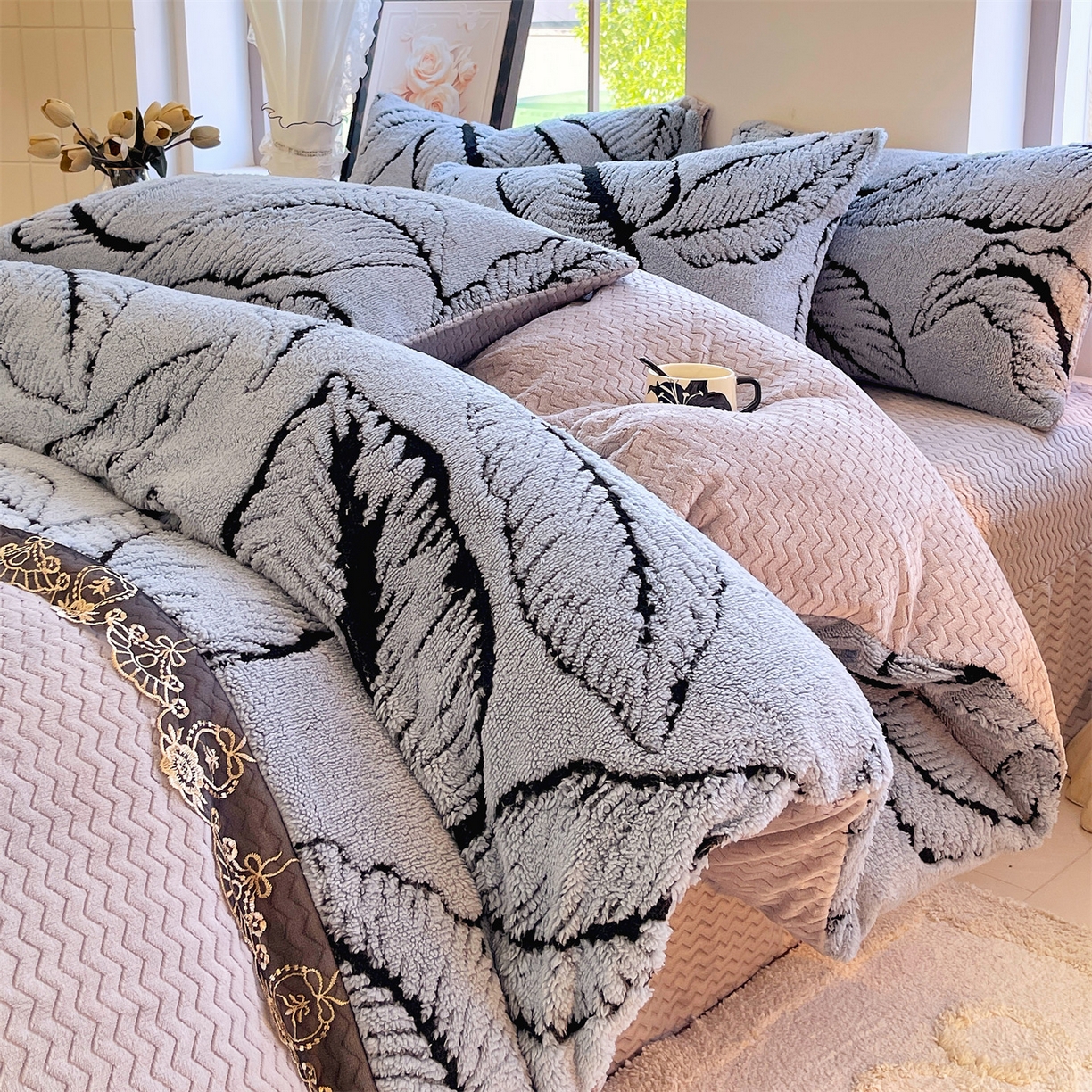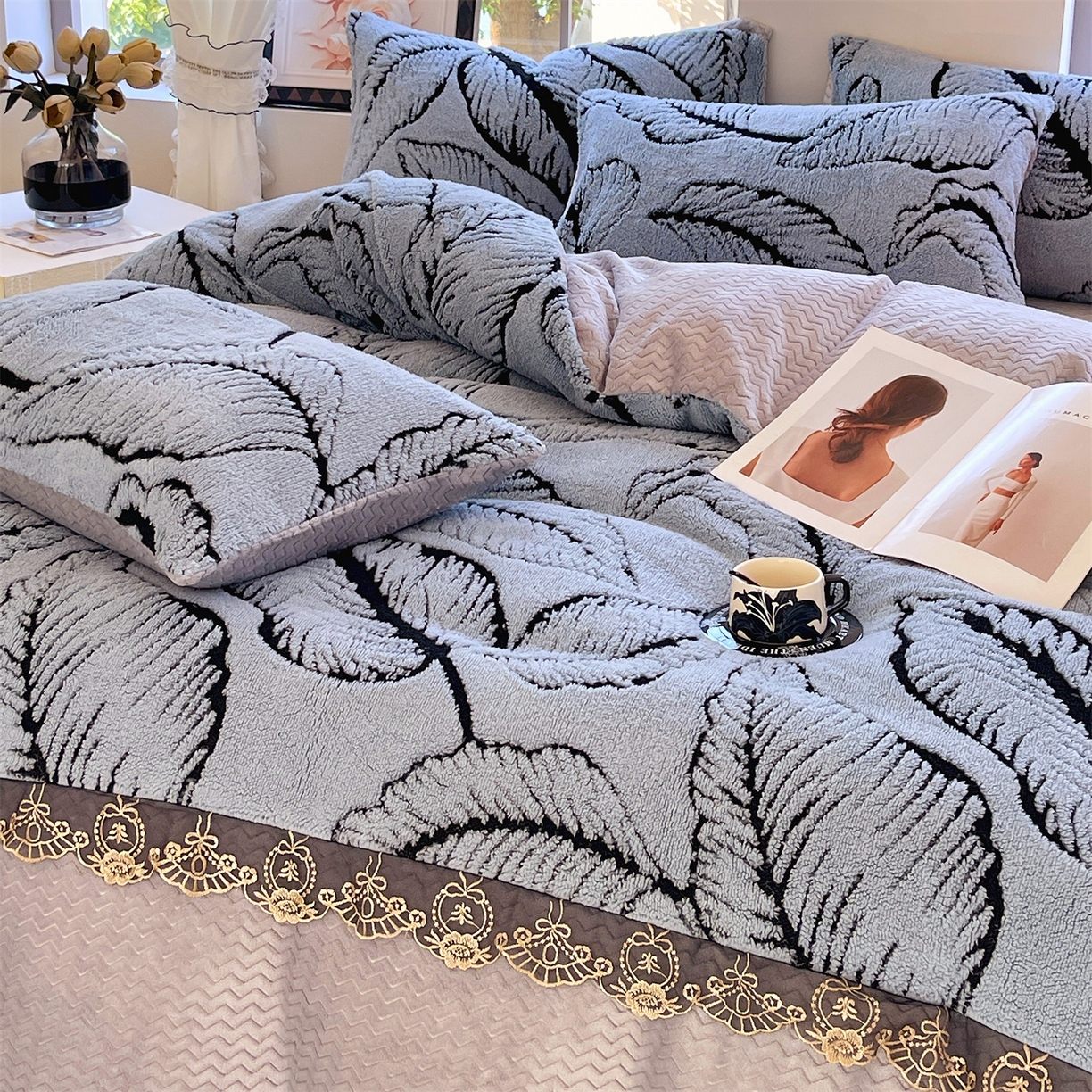 天之澜家纺 2025新款法式阳离子立体牛奶绒蕾丝四件套 一叶深情-宾利兰