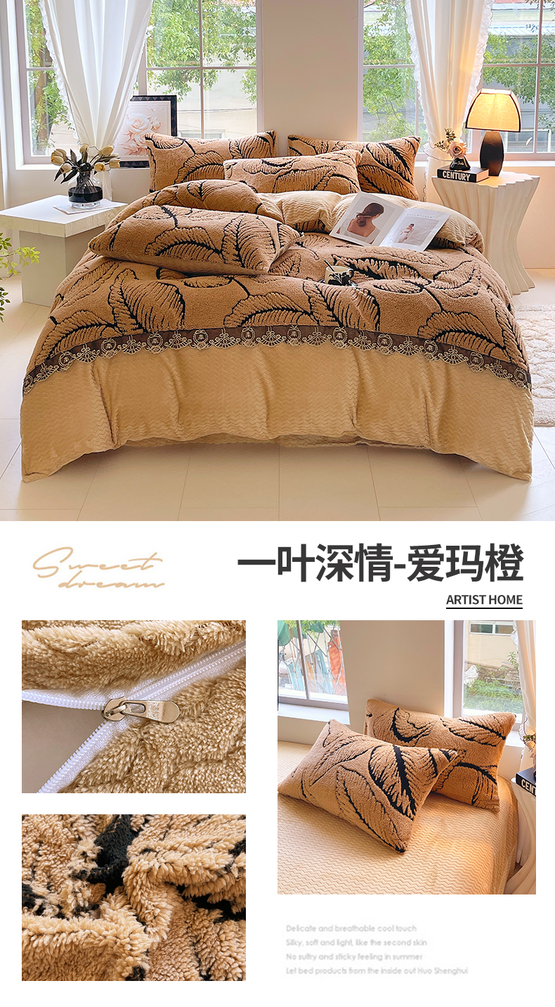 植物羊绒简约斜纹磨毛四件套