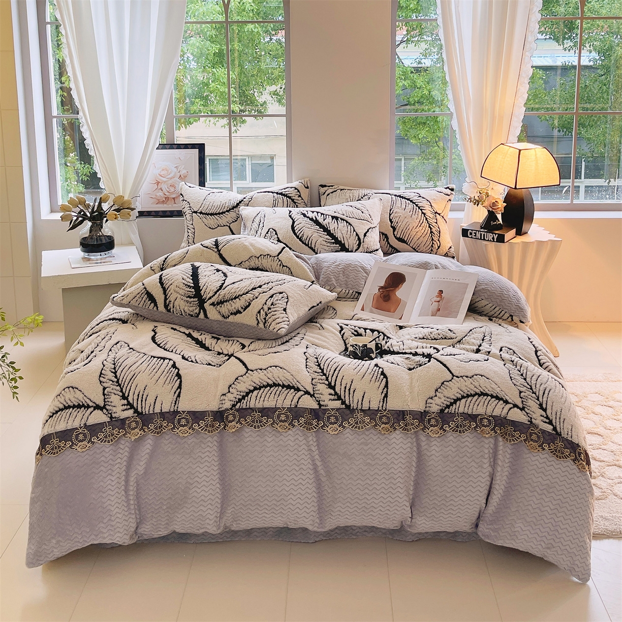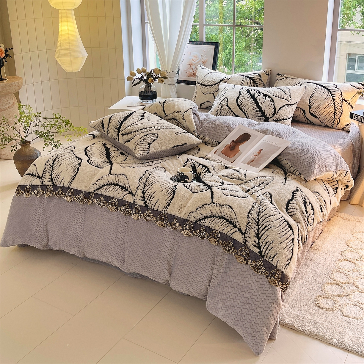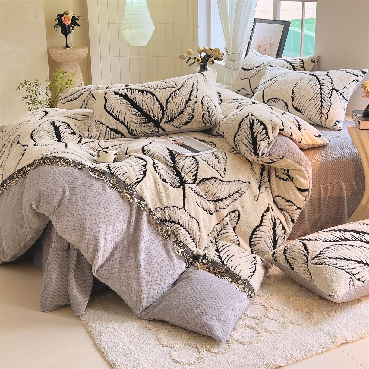 2025新款法式阳离子立体牛奶绒蕾丝四件套