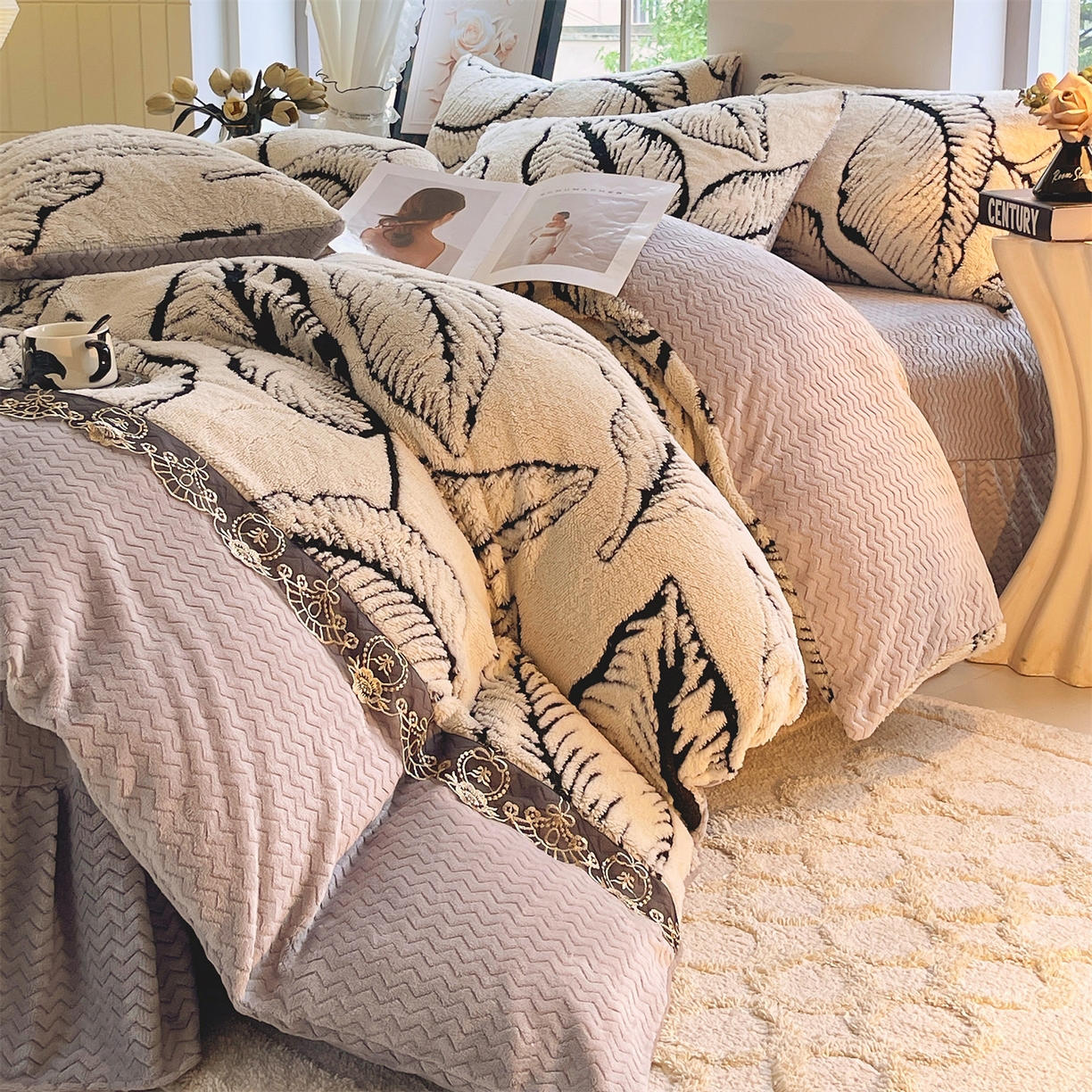 2025新款法式美拉德高克重兔绒四件套