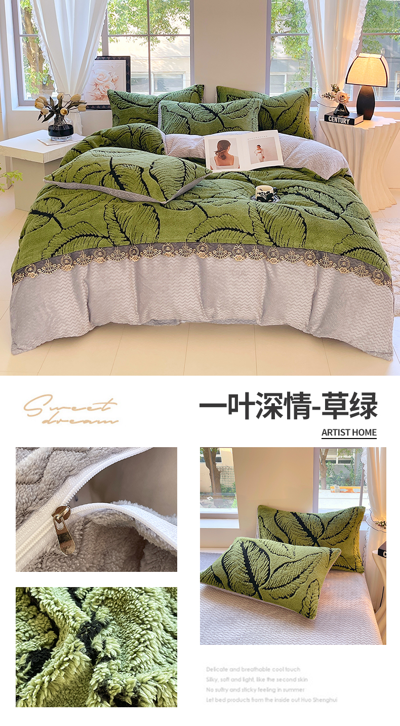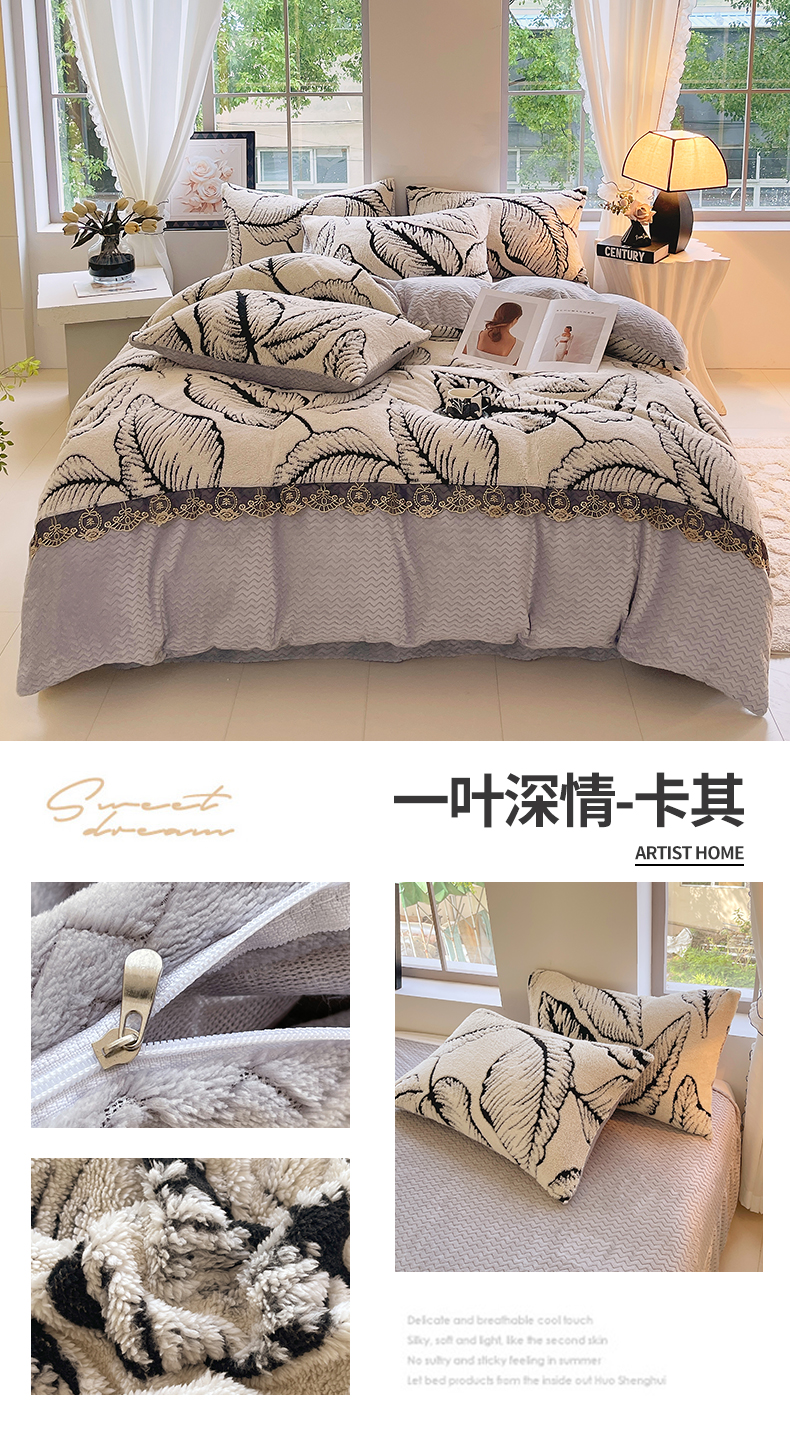 植物羊绒简约斜纹磨毛四件套